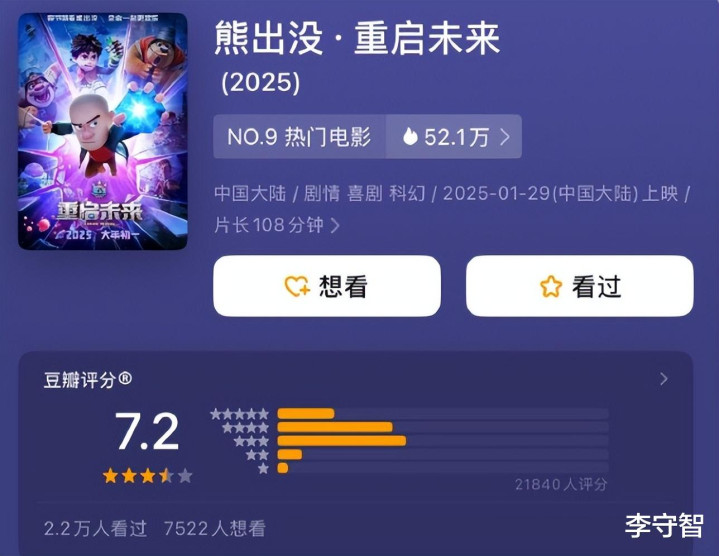 《熊出没》系列的新片,不知道是受到《哪吒2》的强烈冲击,还是这个系列已经遭遇审美疲劳,即使拿下了7.2比其余四部都高的评分,票房却大不如从前,存在感很弱,基本上没啥关注和讨论。